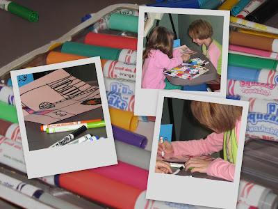 Brian's mom (Linda) bought 2 big packs of markers for the girls. One for Janae and Brenna and one for Senica. When Janae and Brenna got to our house, they got the markers out and colored with no arguing for a good 45 minutes! Brenna drew fish for Senica and Janae made a thank you card for Linda. The markers are mini-markers called Pip-Sweaks! How fitting!! :)
